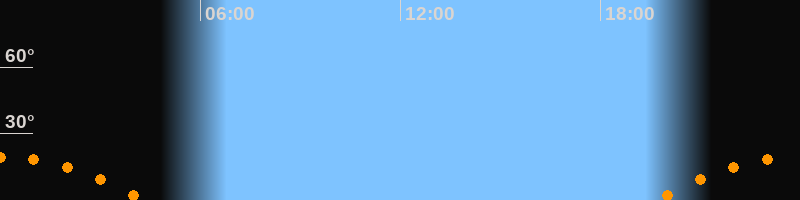 Aufgang19:38 Uhr im Südosten (αAz = 121,4°)