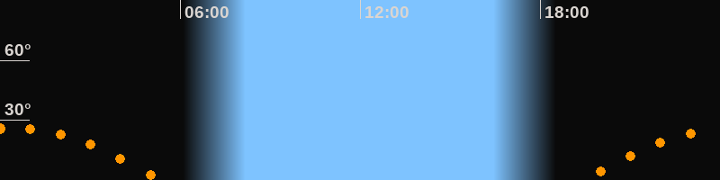 Höchster Stand (Kulmination)00:22 Uhr (h = 26,1°)