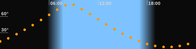 | Höchster Stand (Kulmination) | 08:34 Uhr (h = 82,4°) |