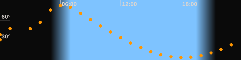 | Höchster Stand (Kulmination) | 06:13 Uhr (h = 82,4°) |