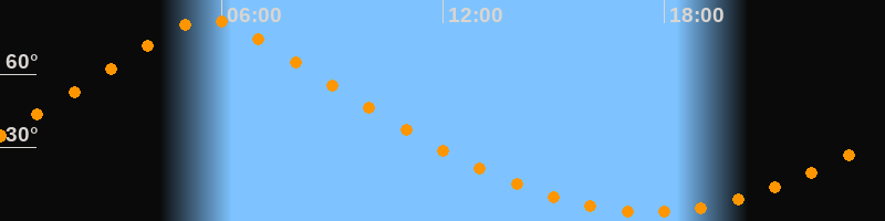 | Höchster Stand (Kulmination) | 05:39 Uhr (h = 82,4°) |