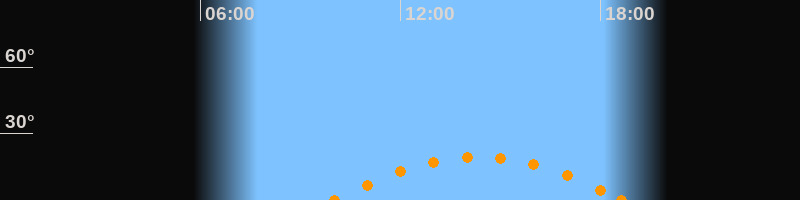 Höchster Stand (Kulmination)14:18 Uhr (h = 19.5°)