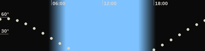 Höchster Stand (Kulmination)00:38 Uhr (h=57.3°)