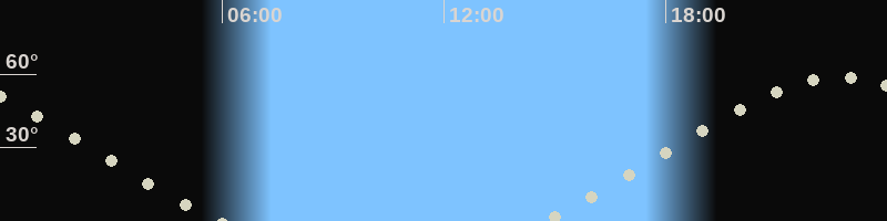 Höchster Stand (Kulmination)22:45 Uhr (h=58.7°)