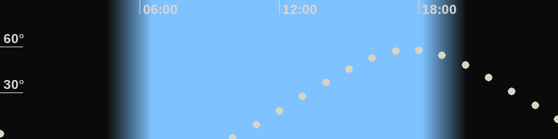 Höchster Stand (Kulmination)17:36 Uhr (h=57.9°)