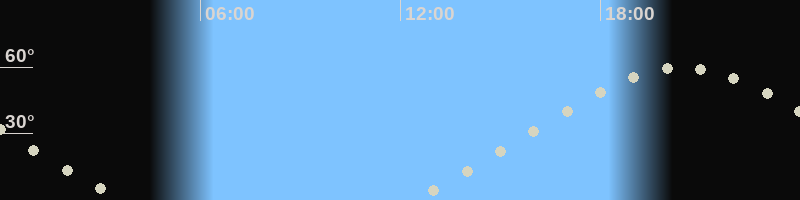 Höchster Stand (Kulmination)20:28 Uhr (h=59.8°)