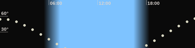 Höchster Stand (Kulmination)00:16 Uhr, (h=54.3°)