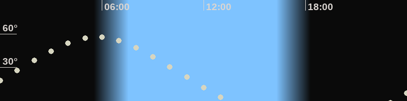 Höchster Stand (Kulmination)05:42 Uhr (h=57.4°)
