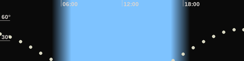 Höchster Stand (Kulmination)23:30 Uhr (h=46.6°)