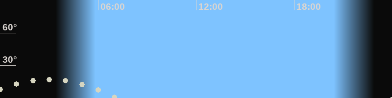 Monduntergang07:08 Uhr im Südwesten (αAz = 234°)