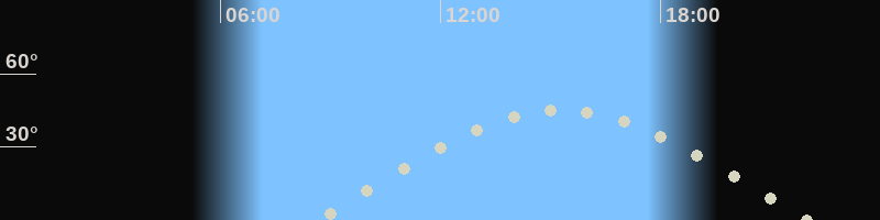 Höchster Stand (Kulmination)15:11 Uhr (h=44.9°)
