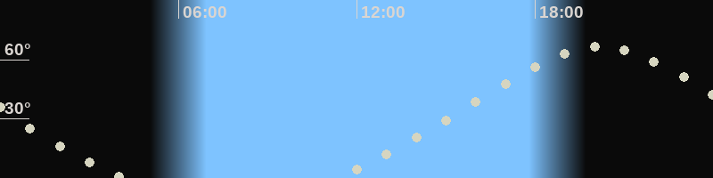 Höchster Stand (Kulmination)20:09 Uhr (h=66.6°)