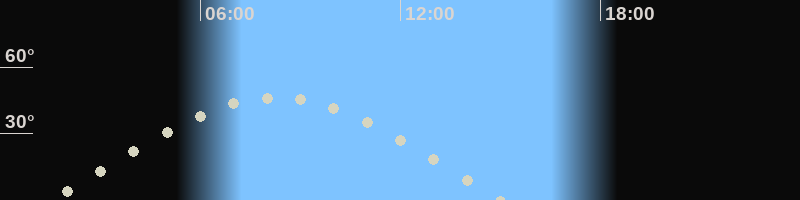 Höchster Stand (Kulmination)08:20 Uhr (h=46.5°)