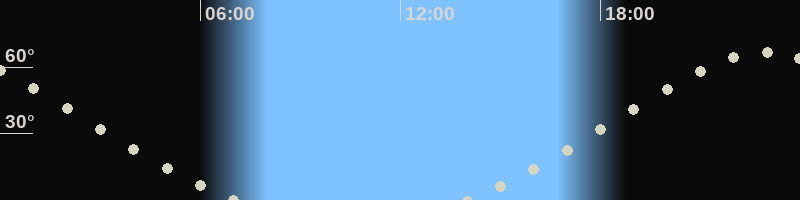 Höchster Stand (Kulmination)22:56 Uhr (h=66.7°)