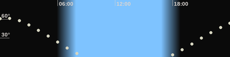 Höchster Stand (Kulmination)00:35 Uhr (h=61.5°)