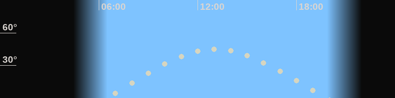 Höchster Stand (Kulmination)12:55 Uhr (h=44.3°)