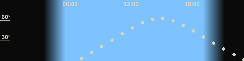 Höchster Stand (Kulmination)15:37 Uhr (h=62.7°)