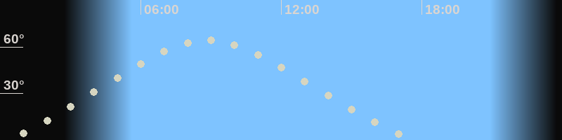 Höchster Stand (Kulmination)08:46 Uhr (h=64.2°)