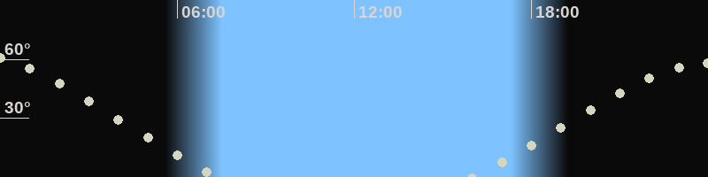 Höchster Stand (Kulmination)23:59 Uhr (h=58°)