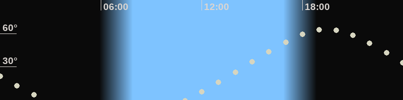 Höchster Stand (Kulmination)19:21 Uhr (h=63.7°)