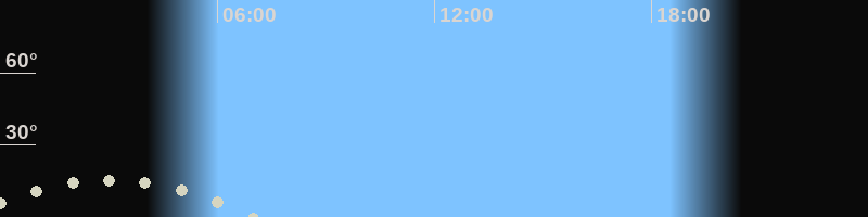 Monduntergang07:01 Uhr im Südwesten (αAz = 230.6°)