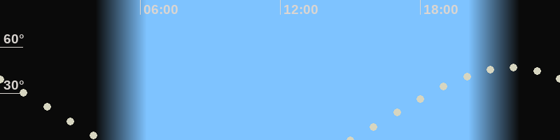 Höchster Stand (Kulmination)21:53 Uhr (h=47.2°)