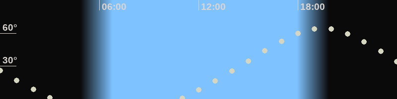 Höchster Stand (Kulmination)19:27 Uhr (h=64.7°)
