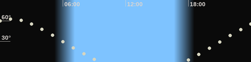 Höchster Stand (Kulmination)01:05 Uhr (h=62.6°)