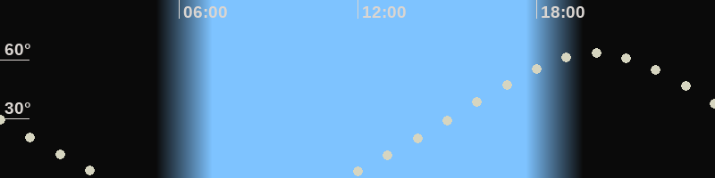 Höchster Stand (Kulmination)19:56 Uhr (h=63.4°)