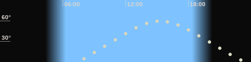 Höchster Stand (Kulmination)15:15 Uhr (h=59.7°)