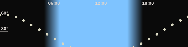 Höchster Stand (Kulmination)00:32 Uhr, (h=62.1°)