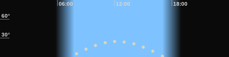 Höchster Stand (Kulmination)12:08 Uhr (h=24.5°)