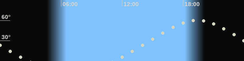 Höchster Stand (Kulmination)19:21 Uhr (h=60.4°)