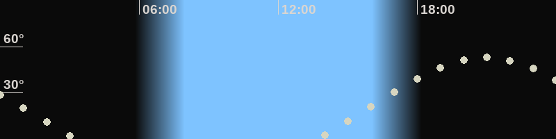 Mondaufgang13:36 Uhr im Osten (αAz = 69.6°)
