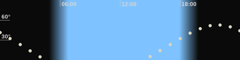 Höchster Stand (Kulmination)21:46 Uhr (h=53°)