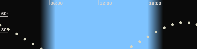 Höchster Stand (Kulmination)22:31 Uhr (h=49.1°)