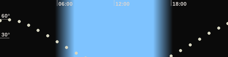 Höchster Stand (Kulmination)00:46 Uhr (h=59.2°)