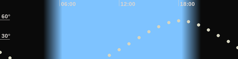 Höchster Stand (Kulmination)18:09 Uhr (h=58.5°)