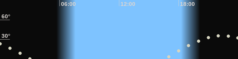 Monduntergang03:00 Uhr im Westen (αAz = 258.4°)