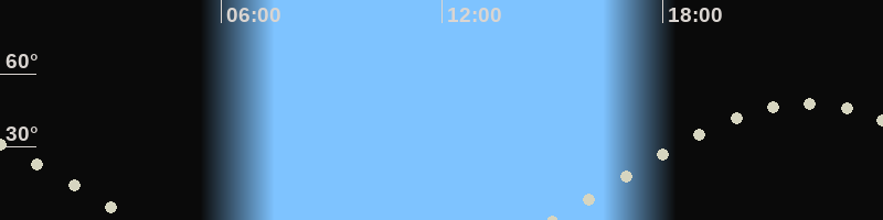 Höchster Stand (Kulmination)21:49 Uhr (h=47.7°)