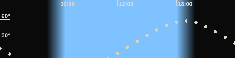 Höchster Stand (Kulmination)18:49 Uhr (h=57.5°)