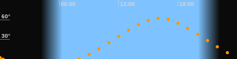 Höchster Stand (Kulmination)16:09 Uhr (h = 62.2°)