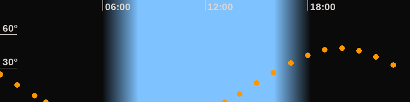 Höchster Stand (Kulmination)19:53 Uhr (h = 47.7°)
