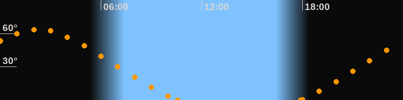 Höchster Stand (Kulmination)02:15 Uhr (h = 63.7°)