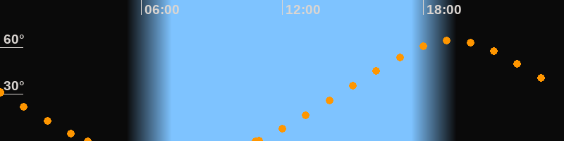 Höchster Stand (Kulmination)19:15 Uhr (h = 64.5°)