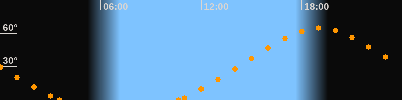Höchster Stand (Kulmination)19:04 Uhr (h = 64.6°)