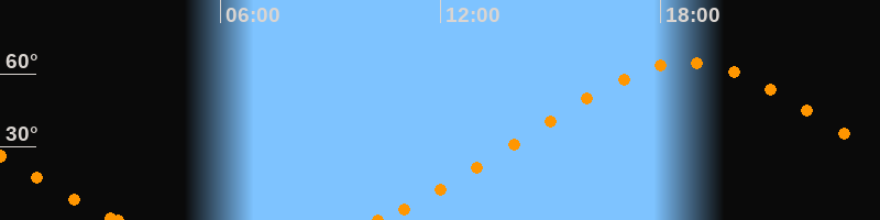 Höchster Stand (Kulmination)18:43 Uhr (h = 64.7°)