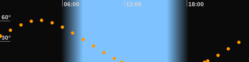 Höchster Stand (Kulmination)03:45 Uhr (h = 60.7°)