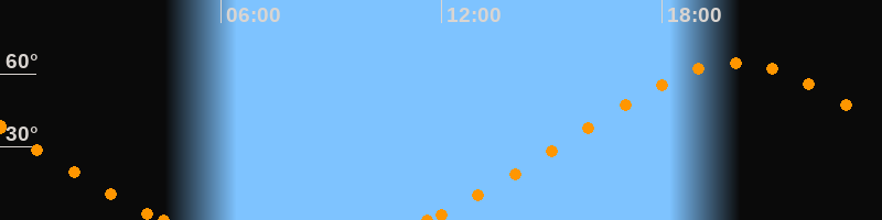 Höchster Stand (Kulmination)20:00 Uhr (h = 64.4°)