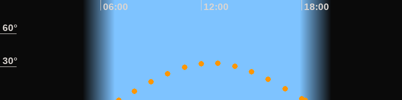 Höchster Stand (Kulmination)12:37 Uhr (h = 33.4°)